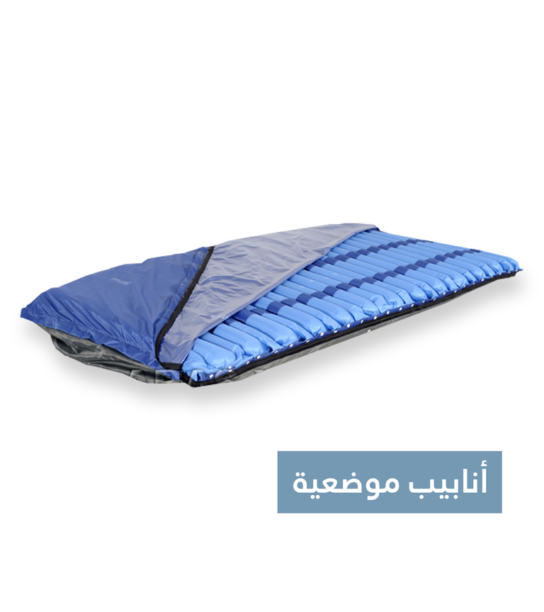 فرشة ضغط الهوائي لتحديد المواقع تساعد على منع تقرحات الضغط من خلال السماح للمريض بالتحول إلى اليمين أو اليسار بزاوية معينة. بالإضافة إلى ذلك، فهو يعمل بشكل فعال على توزيع الضغط.